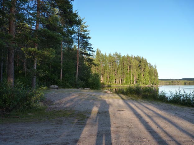 På andra sidan stora vägen (som inte är så stor) ägde campingen plats nere vid sjön. Det är det jag menar med två och en halv sektion, för de hade plats för två ekipage där också.