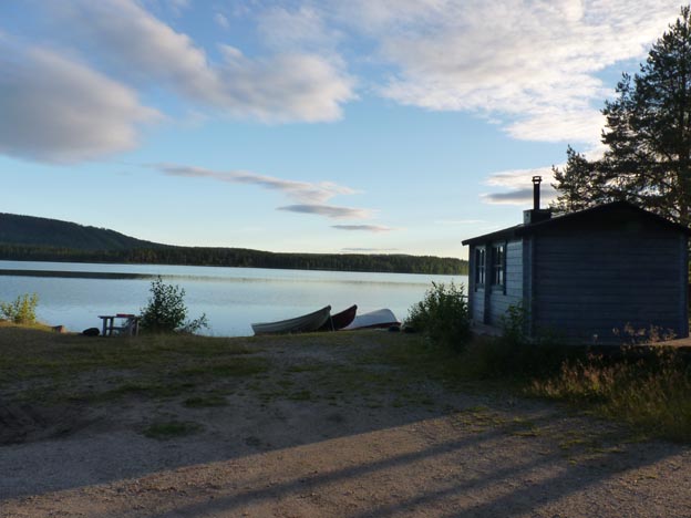 Vid sjön fanns en vedeldad bastu, båtar, en liten brygga och badplats. Det var ingen jättestrand, men alldeles tillräcklig.