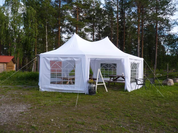 Det fanns en gemensam grillplats med partytält, bänkar och bord.