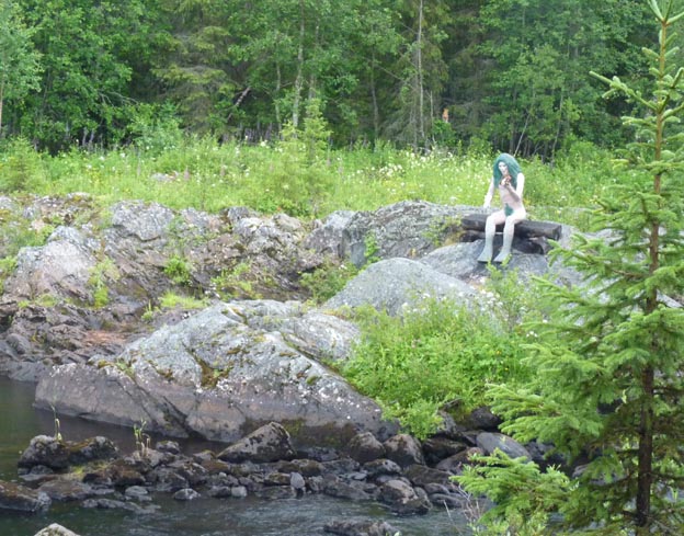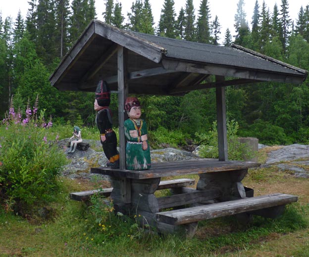 När man har sett Näcken och tittat på figurerna vid bordet följer man stigen in i skogen. Det är tät skog och mycket mygg. Det är inte svårt att följa stigen, men det finns lite rötter tvärs över den, och lite blötare partier när det regnar.