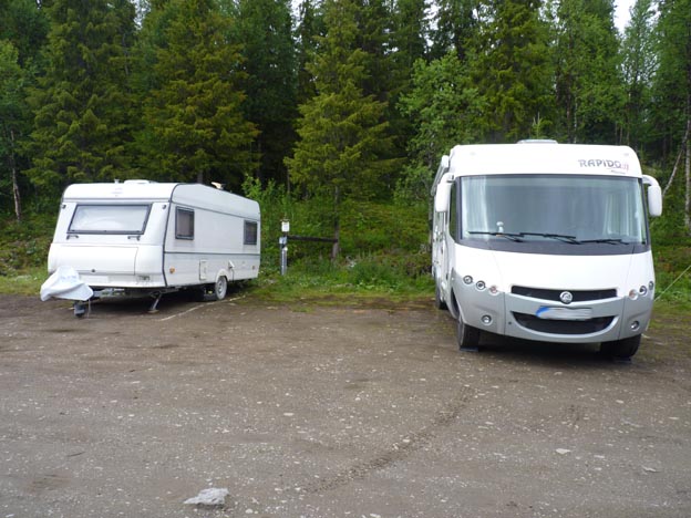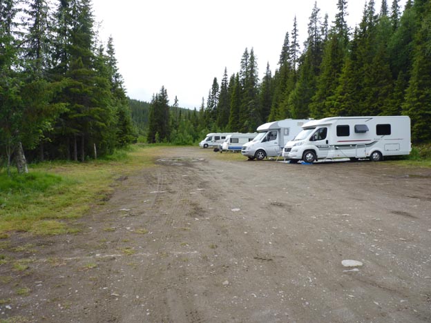 Platserna var svagt uppmärkta med vit färg på marken. Man ser spår av det precis till höger om husvagnen. Klockan var strax efter 14.00 när vi kom, och då tog vi en av de sista platserna. Det åkte några senare på kvällen, men det fylldes snabbt på med nya.