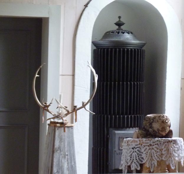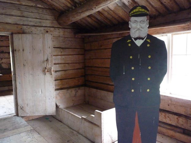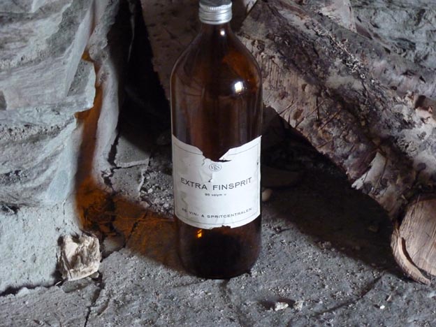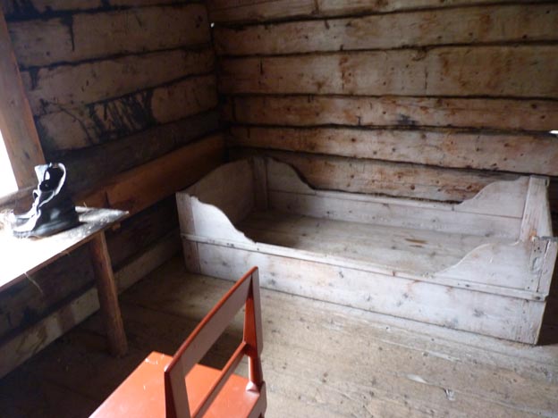Inredningen i länsmansstugan är inte riktigt vad vi är vana vid, men vi hittade en flaska sprit i alla fall. Tyvärr var den tom.