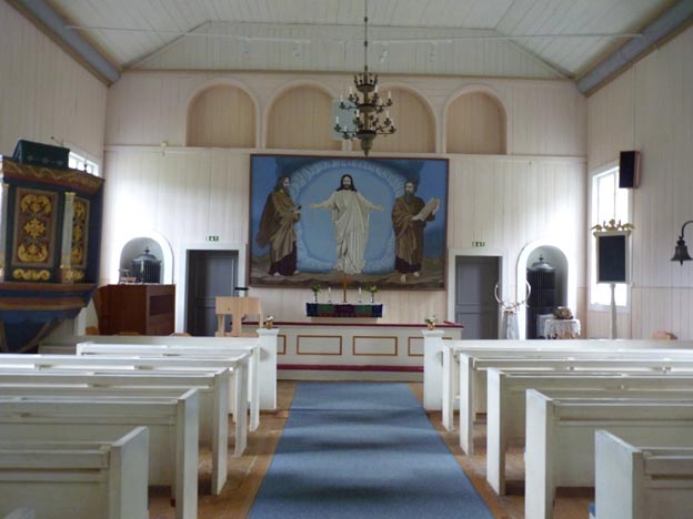 Det här är den första kyrka som jag har varit i som har haft ett renhorn längst fram.
