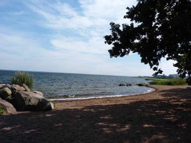 På andra sidan om den lilla gräsmattan som man har vid bilen finns en fin badplats. Hundar är också tillåtna där, och det var många som kom och badade med sina djur.