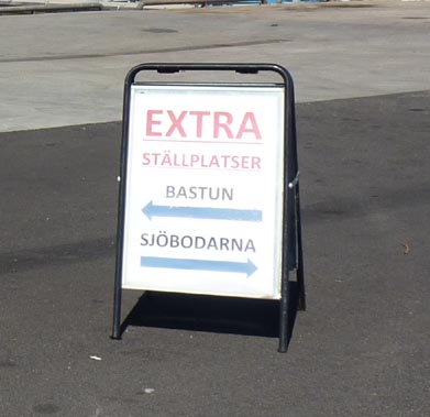 En sådan här skylt blir man glad över att se. Eftersom bilen stod i riktning mot ”bastun” så åkte vi dit.