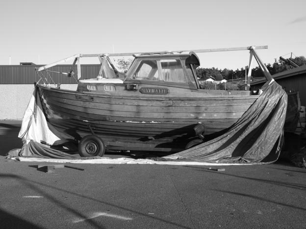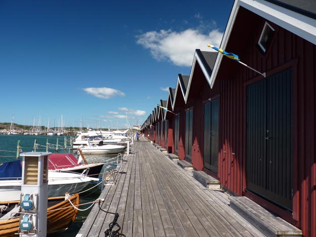 Vid inre delen av hamnen fanns det en hel rad med sjöbodar. Alla var stängda, jag tror att det var privatpersoner som ägde dem. Det var inte som i hamnen i Byxelkrok till exempel, där det finns öppna sjöbodar med roliga saker att titta på i.