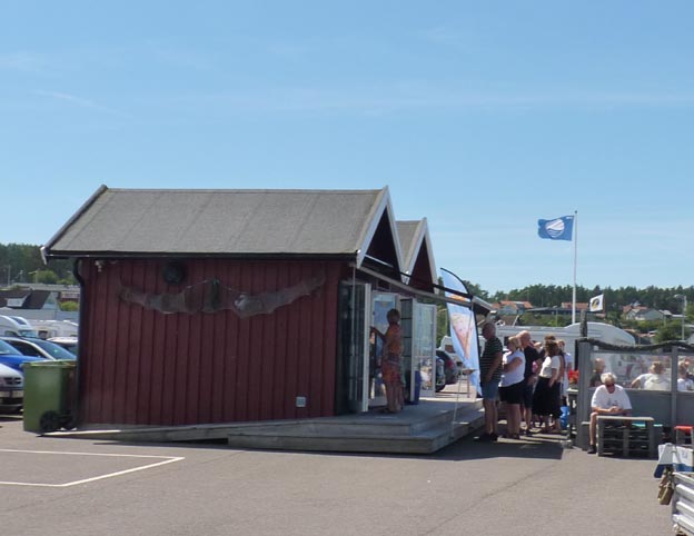 I hamnen fanns en liten servering, där de hade enklare mat och dryck. Vi funderade på lunch, men det var för mycket folk där och en väldig trängsel i kön och bland borden.