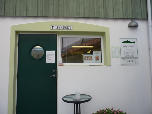 Fiskhuset var inte svårt att hitta. Här tog man Covid19 på allvar, och släppte bara in ett sällskap i taget genom dörren. Det var bara två par före oss i kön, så vi behövde inte vänta länge. Här köpte vi färsk fisk, både lax och kummel. Sedan gick vi förbi och köpte de grönsaker vi hittade. Planen var att göra fisksoppa. Vi fick tag på morötter och tomater, potatis hade vi sedan innan, och sedan fick Lelle experimentera fram något utifrån det.