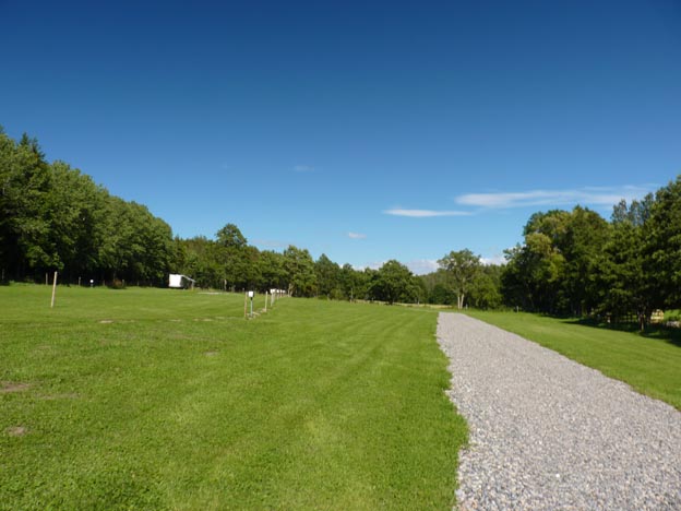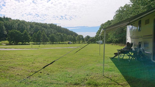 Vi åkte till område öst. Här fanns en stor gräsplan som vi blev totalt fyra husbilar på. Perfekt åt oss och perfekt åt katten. Vi ställde oss i ett hörn, i vanlig ordning.