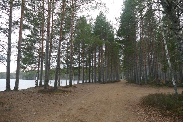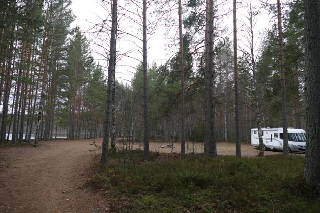 På lördag morgon åkte vi några hundra meter för att komma till nästa vändplan, närmare jaktstugan. Där går det också att övernatta, men utan sjöutsikt.