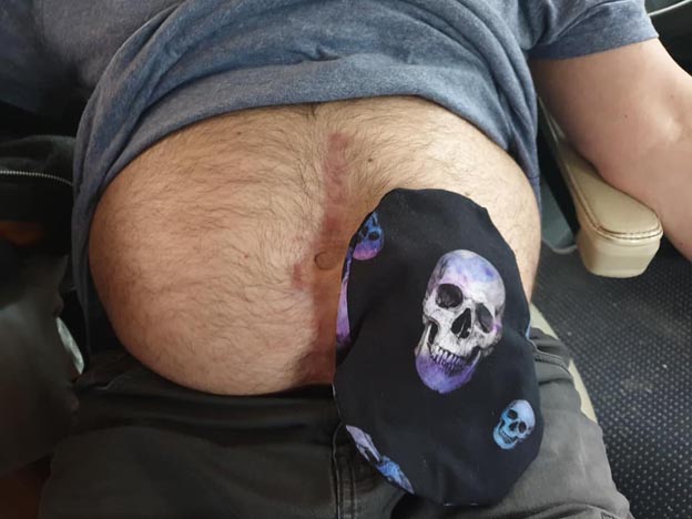 Efter jaktmötet åkte vi in till Vansbro för att träffa Lelles mamma en stund. Vi har bara sett varandra en gång sedan pandemins start, och nu när både hon och Lelle hade fått sina första sprutor vaccin så passade vi på. Hon hade sytt snygga överdrag till Lelles stomipåsar som vi fick med oss hem.