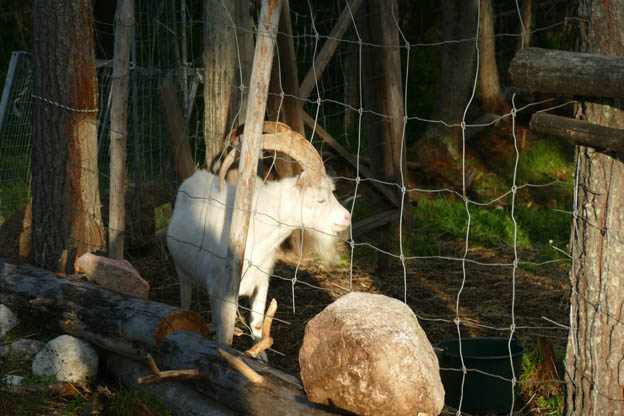 Vi tittade bara snabbt på kvällen. Då var alla djur inomhus, förutom den här geten.