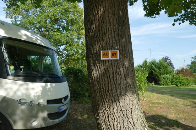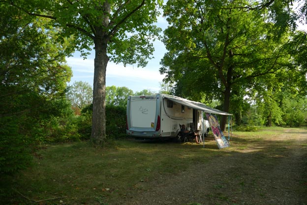 Här var varmt som i en ugn. Det var lite på grund av värmen som vi åkte just hit. Vi kom ihåg att det fanns väldigt gott om stora träd som gav skugga på den här campingen. Vi hade lite sol på eftermiddagen när vi kom fram, men resten av dagen hade vi skugga från olika träd.