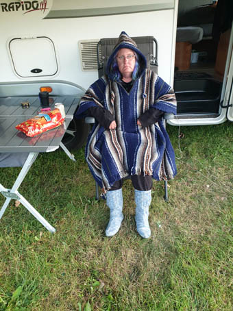 På kvällen var det bara 12 grader. Efter att ha kommit från värmen ute i Europa frös jag så att både ullponcho och raggsockor åkte på.