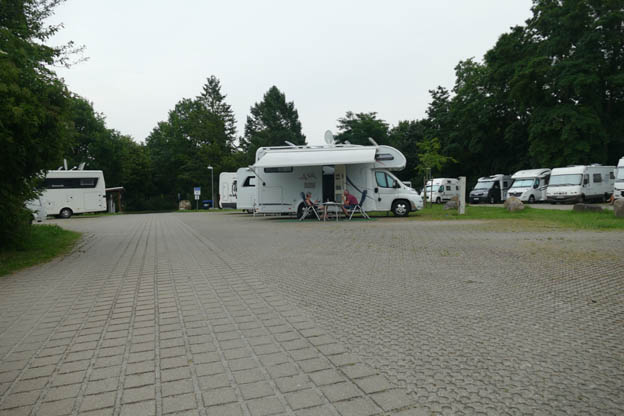 På andra sidan diket fick vi tyska grannar. De gjorde tvärtemot alla andra som hade kört in, de backade in så vi fick dörrarna mot varandra. De var väldigt trevliga, visade det sig, och jag fick träna på min tyska. Tack vare dem gick vi inte in till staden Lüneburg på kvällen. De sa att det var stormvarning på gång, men att det skulle gå över till dagen efter. Alltså betalade vi för en natt till, för att utforska staden dagen därpå.