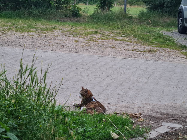 Vi hade turen att hitta en plats bortanför rondellen, med ett dike som närmaste granne åt ena hållet. På så vis fick vi gräs utanför bilen. Vi tänkte att Olivia skulle gilla det.