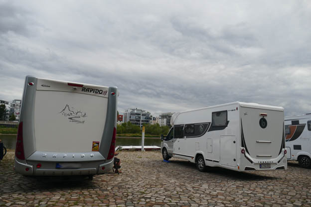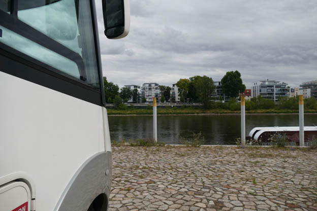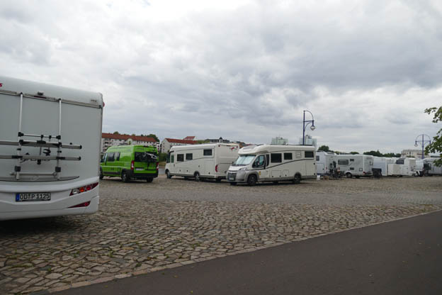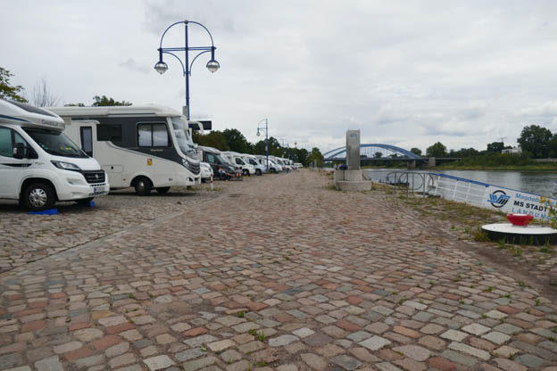 Vi hade tur och hittade en tillräckligt lång plats nästan längst in på ställplatsen. Vi stod med fronten mot Elbe.