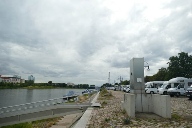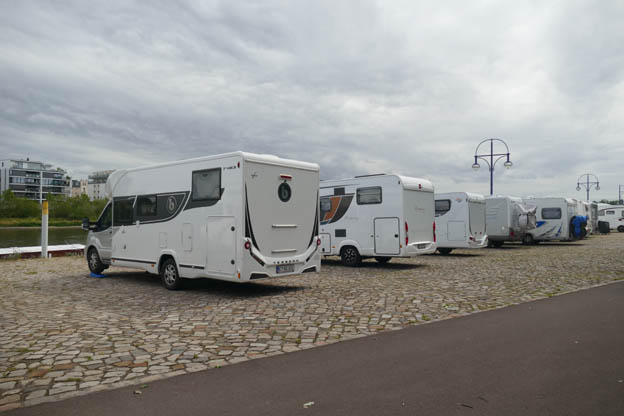 Det här var en ställplats med väldigt underligt upplägg. För att komma in till platsen var man tvungen att betala 8 € i automaten för att stolpen skulle sänkas ned i vägen. Det gick inte att parkera för att gå in och titta om det fanns lediga platser, så man fick helt enkelt chansa. Väl inne fanns det ingenstans att vända, så om man inte fick plats fick man backa ut.