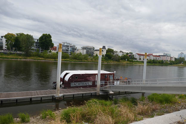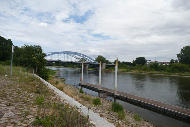 Vi ville testa en annan väg över/under Elbe än tunneln i Hamburg och färjan i Glückstadt, så vi for österut med sikte på Magdeburg. Vi kom fram till ställplatsen kl 13.30. Vi gick aldrig in till stan, så jag vet inte hur långt det är från ställplatsen. Vi såg inga pråmar på Elbe här, bara några små båtar och kanoter.