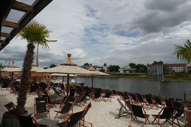 Precis bortanför ställplatsen fanns en strandbar med sand och allt. Vi gick dit och drack varsin öl.