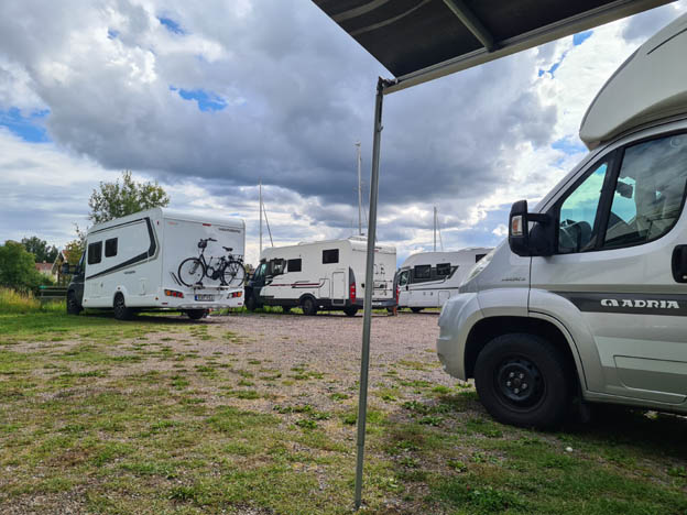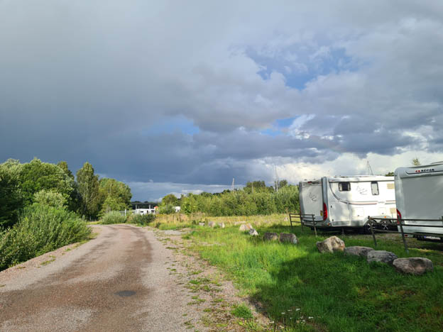När vi kom var det nästan fullt, i alla fall på området utan el. El finns om man följer vägen en liten bit längre. Vi var inte där och tittade, men det verkade vara fullt där. Folk åkte dit och vände och kom till icke elplatserna istället.