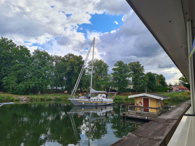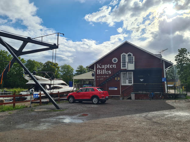 Vi åkte först till ställplatsen i Söderköping, men där var det fullt. Efter lite trixande kunde vi vända och åka vidare. Vi åkte till Kapten Billes vid Norsholm istället. Den ställplatsen ligger precis vid Göta Kanal.