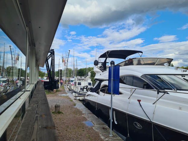 Det låg många båtar vid kajen, Vi tittade på dem och på en broöppning och en slussning.