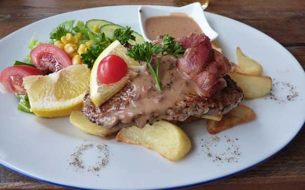 Vi har ätit på restaurangen tidigare, när Kapten Bille och hans fru drev den. Då var det väldigt bra mat, så vi tänkte testa igen. Nu har några andra tagit över, och maten var en väldig besvikelse. Personalen var trevlig, den kan man inte klaga på, men maten har försämrats rejält. Förut var det restaurangmat, nu var det gatuköksmat till restaurangpriser. Det var mycket halvfabrikat nu. Gräddsåsen smakade värmd crème fraiche och hade skurit sig, vitvinsåsen som skulle vara till laxen verkade vara crème fraiche blandad med majonnäs och kryddor, ryggbiffen var ingen biff, utan någon form av utbankat nötkött och så vidare. Laxen såg ut att komma från närmaste frysdisk i valfri mataffär. De stekta grönsakerna som skulle vara till enligt menyn visade sig vara bönor. 580 kr kostade det kalaset med varsin öl. Vi äter inte där igen på några år.