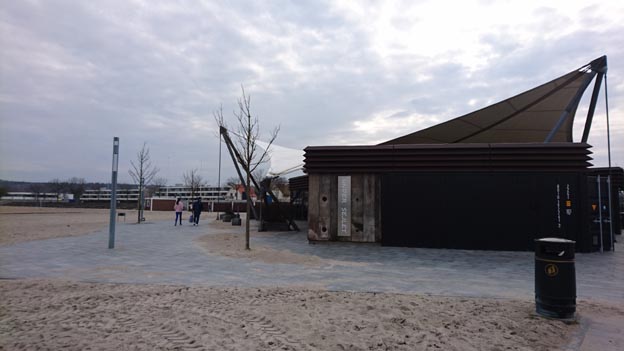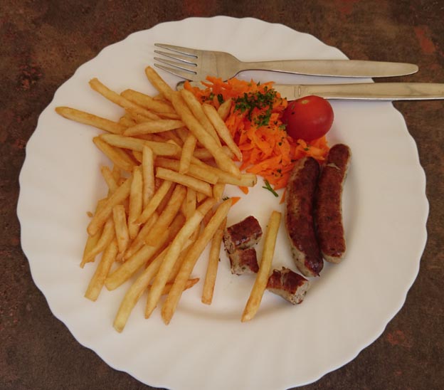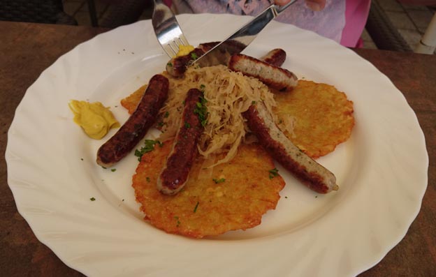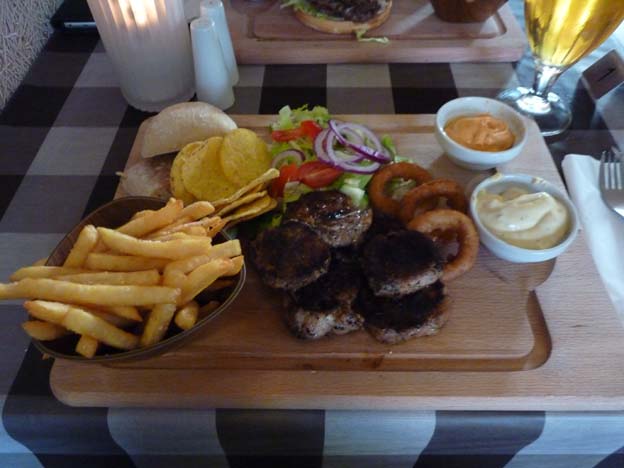 Det här stället på Alexanderplatz var inte öppet dagen innan, eftersom det var röd dag då. Här var det väldigt mycket liv och rörelse. Det fanns mat av olika slag, och dryck också så klart. På scenen spelades det någon form av tysk dansbandsmusik.